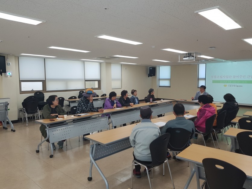 2018년 5월4일 부품조립사업단 참여자 간담회 페이지 정보 작성자사천지역자활센터 작성일 20-03-04 16:52 조회 26회 댓글 0건 목록 댓글목록 0 댓글목록 등록된 댓글이 없습니다.